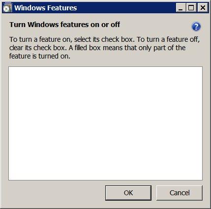When I go to the control panel / programs and features and click on the "Turn Windows Features on or off" the window pops up with the words please wait but after about a second the words disappear and the window stays blank.