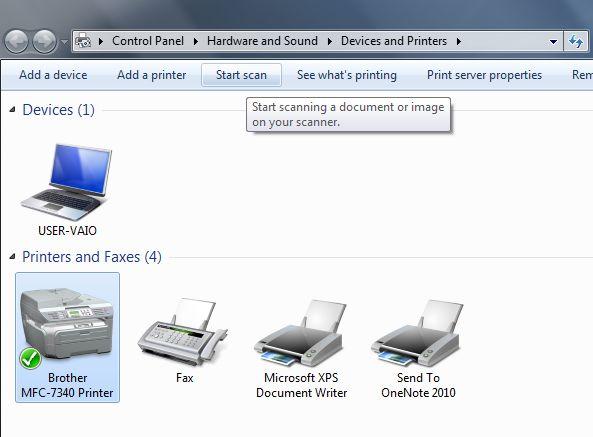 Highlight Brother Printer, then click "Start Scan" at the top of the Device Window.