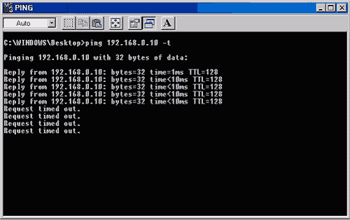 Inside the command prompt box, type PING 192.168.0.10 and press the Enter Key