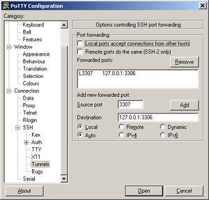 - To connect to the database on the remote computer, the connection string is 127.0.0.1:3307
